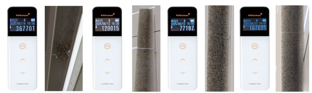 あわせて、ルミテスター(ATP測定) を用いた検査も実施しました。ルミテスターは、目視では判断できない 有機物の存在量を数値として把握するための測定機器です。