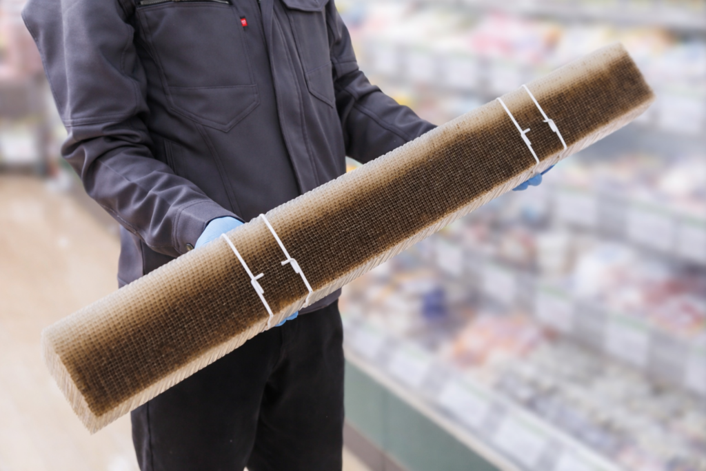 ハニカムは売場から見えない位置に設置されています。構造上、取り外しができない部材ではありませんが、その存在や役割が十分に知られていないため、日常の清掃や点検の対象として意識されにくい状況が、現在も見られます。